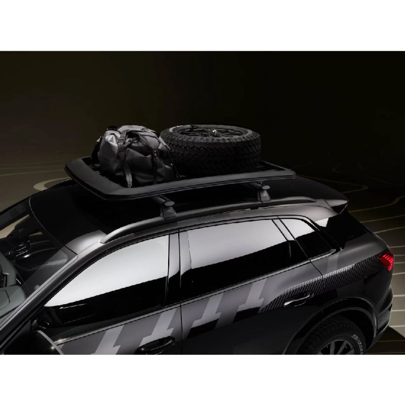 Paindlik ja vastupidav katusekorv pingutusrihmade ja hoidikutega sisu kinnitamiseks sobib pagasi, näiteks Audi reisikoti, hoiustamiseks.